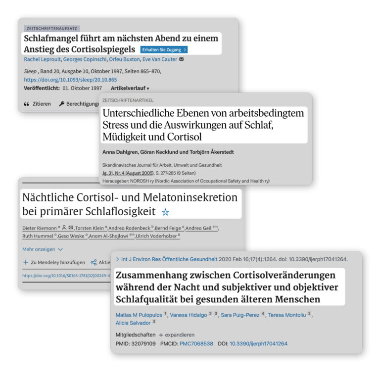 Das Schlafhormon Melatonin kann seine Wirkung nicht entfalten, solange es vom Stresshormon Cortisol überlagert wird. Dein Schlaf, deine Erholung, deine Energiereserven für den Tag werden massiv gestört.