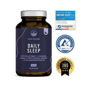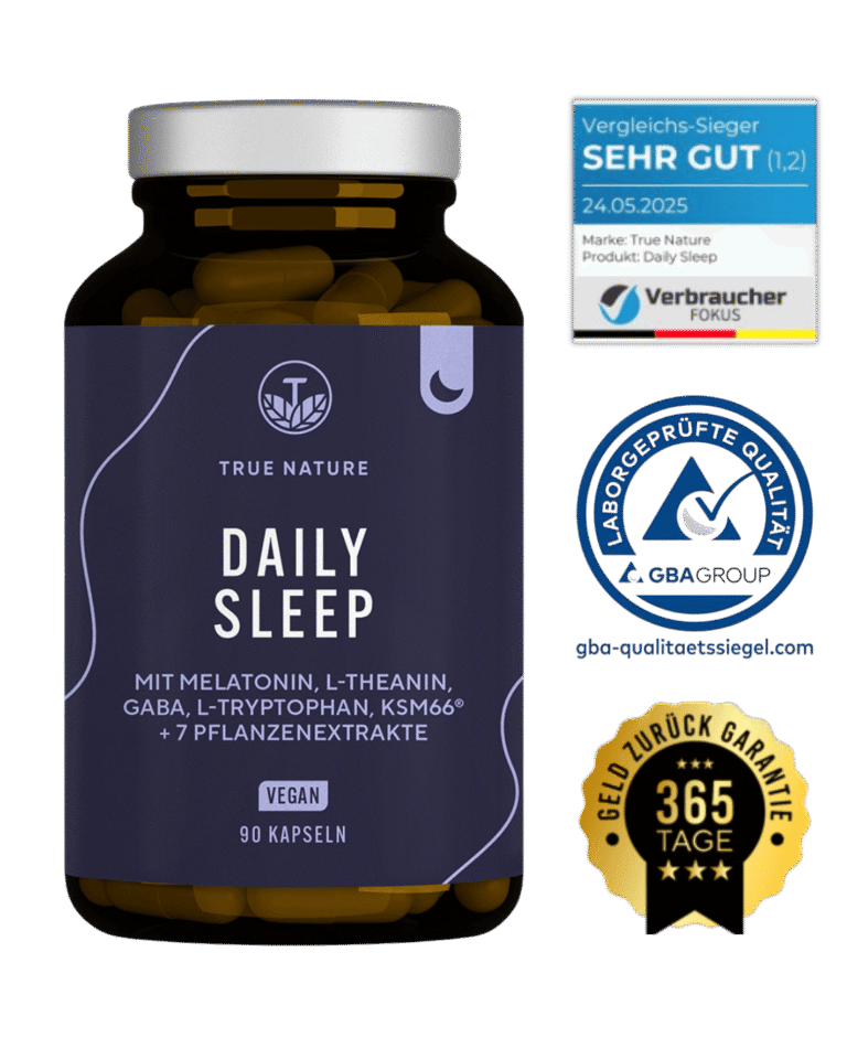 👉 Daily Sleep beruhigt das Nervensystem auf natürliche Weise, sodass du tief schläfst – statt nur zu dösen.