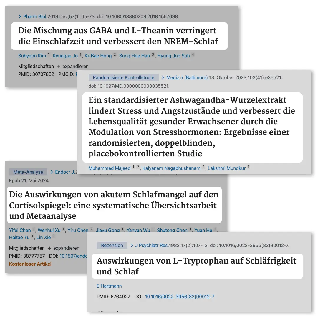 Ich hatte dieselbe Sorge. Aber als ich mir die Liste anschaute, wurde mir klar: GABA produziert mein Gehirn selbst. Tryptophan steckt in meiner Nahrung. Melatonin bildet mein Körper jede Nacht. B-Vitamine nehme ich über Lebensmittel auf. Ashwagandha wird seit Jahrtausenden verwendet. Und Kamille, Lavendel, Melisse – das ist nichts anderes als das, was meine Großmutter als Tee getrunken hat. Nichts davon ist fremd. Die Dosierungen sind klinisch aufeinander abgestimmt, jede Charge wird im Labor geprüft, und das Produkt ist in deutschen Apotheken gelistet. Sicherer geht es bei Nahrungsergänzung kaum.