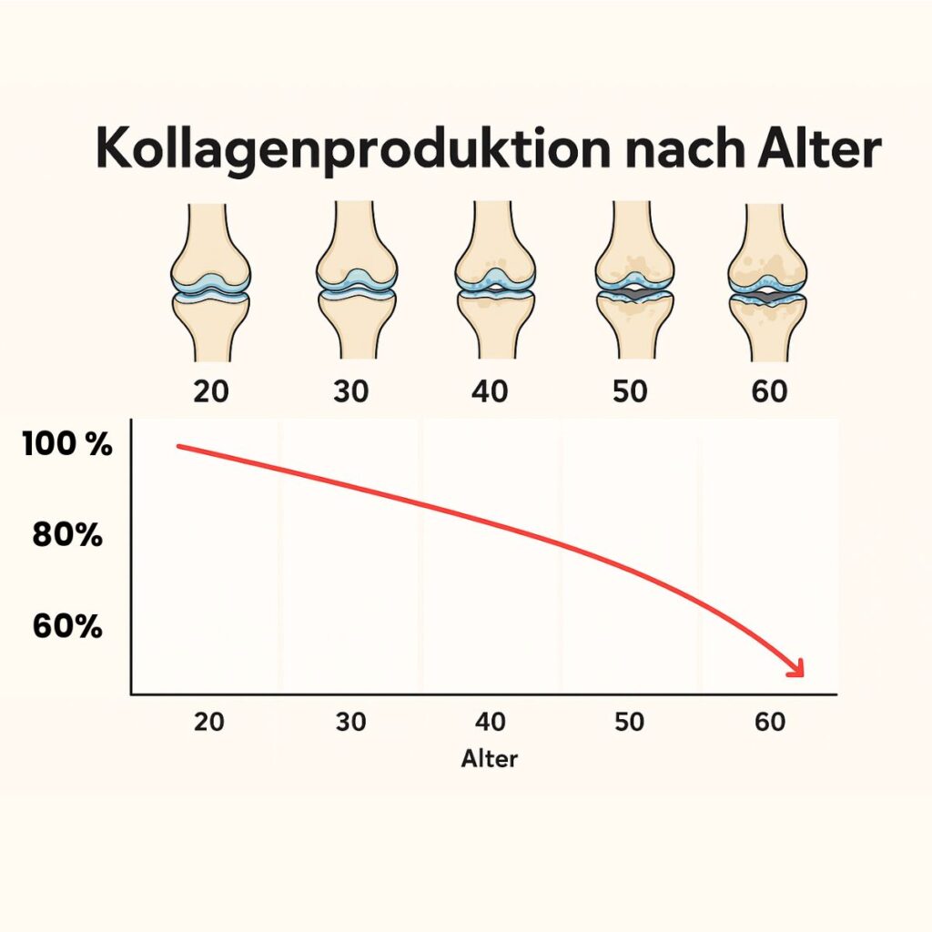Kollagen ist das Baugerüst des Körpers, denn 70% aller Proteine sind Kollagen. Im Alter produzieren wir immer weniger Kollagen. Falten, Reibung, Steifheit entsteht.